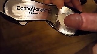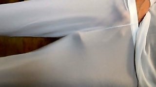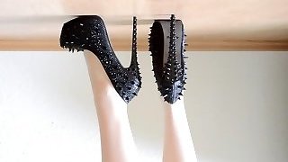 Girl in high heels is on hunkers shows cunt hair on piss cam