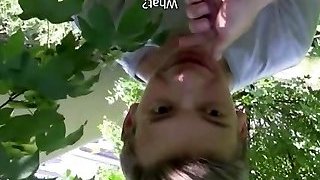 Amateur twink deepthroats dick outdoors