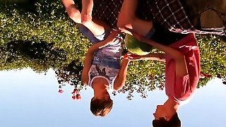 Outdoor rough without a condom and POV blowjob with two twinks
